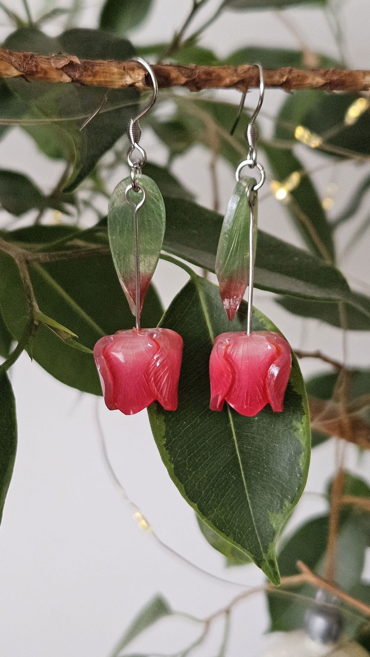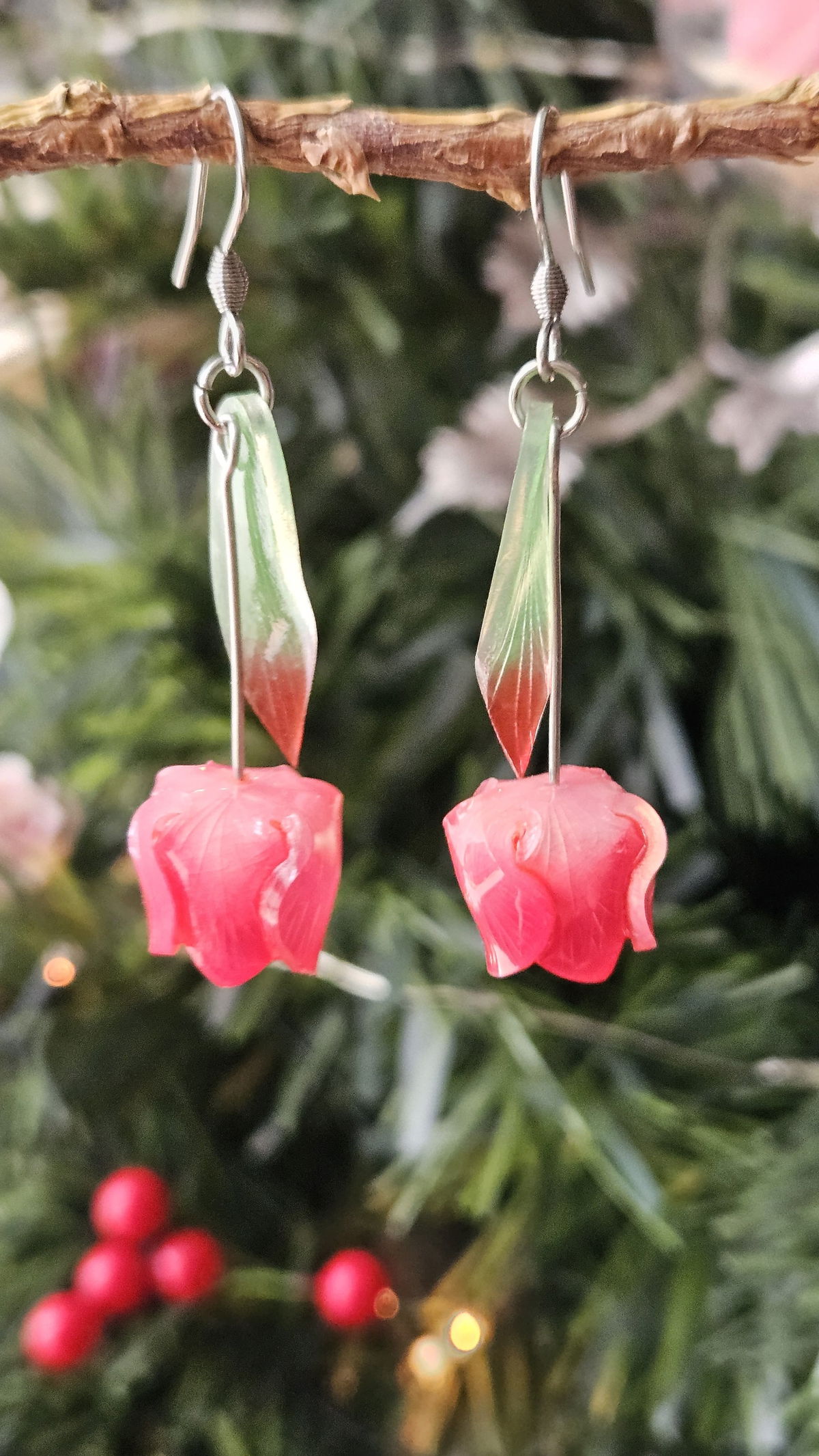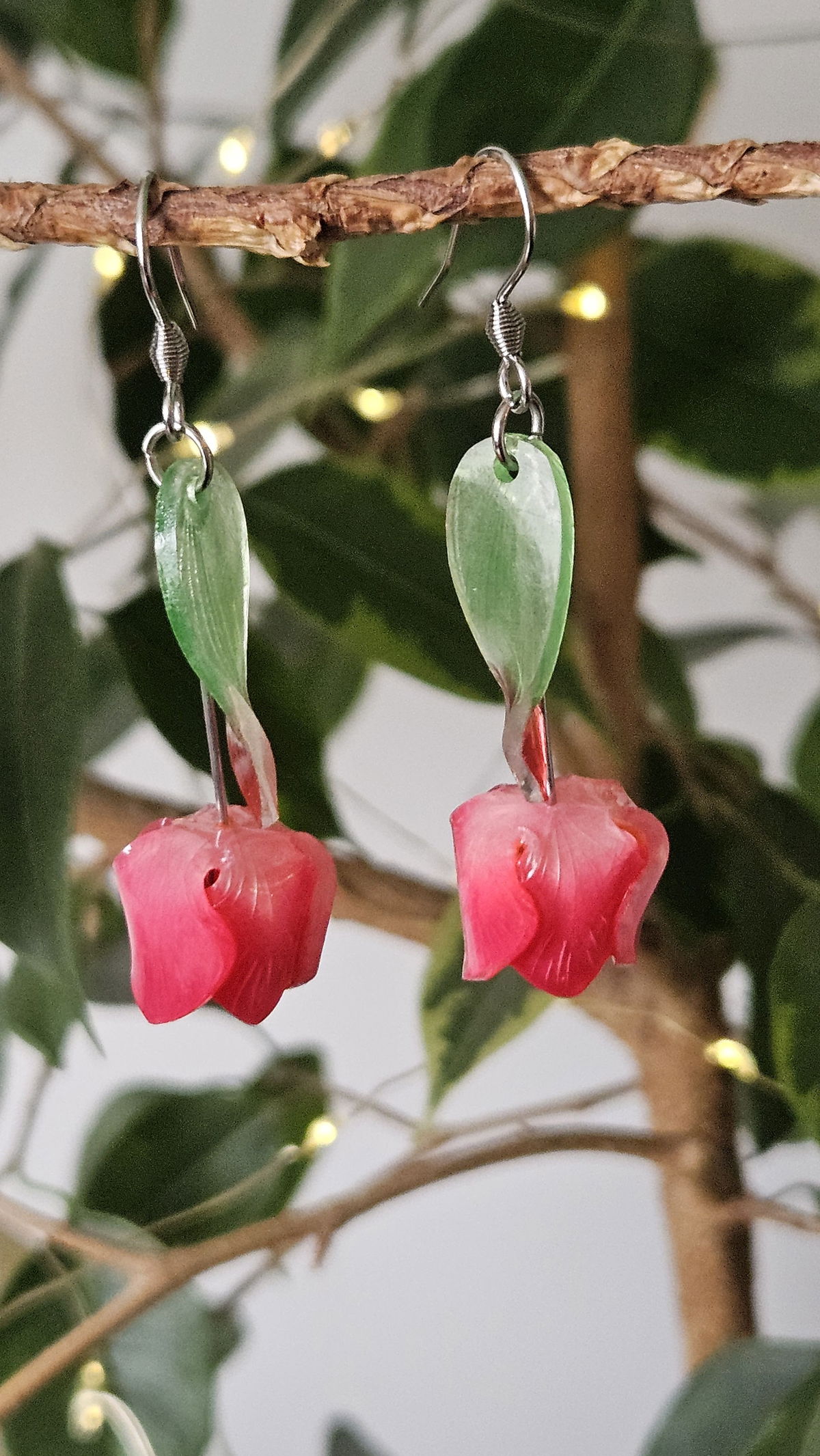 Cada tulipán y hoja están hechas a mano con plástico retractil.