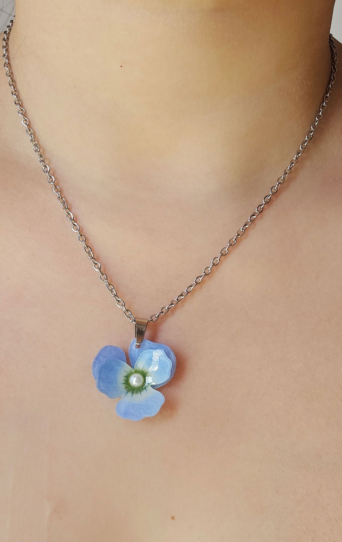 Collar de acero quirúrgico de 45 cm con dije de pensamiento hecho a mano