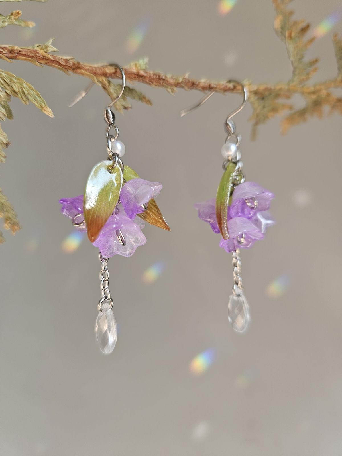 Divino aro de flores de lirios de vidrio y hojas hechas a mano con plástico retráctil
