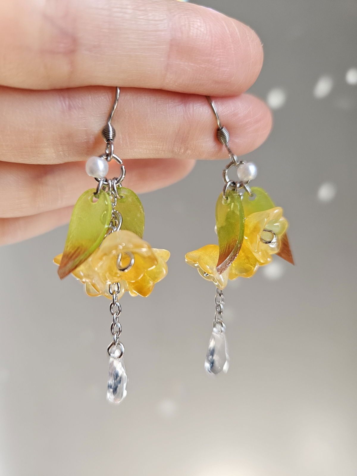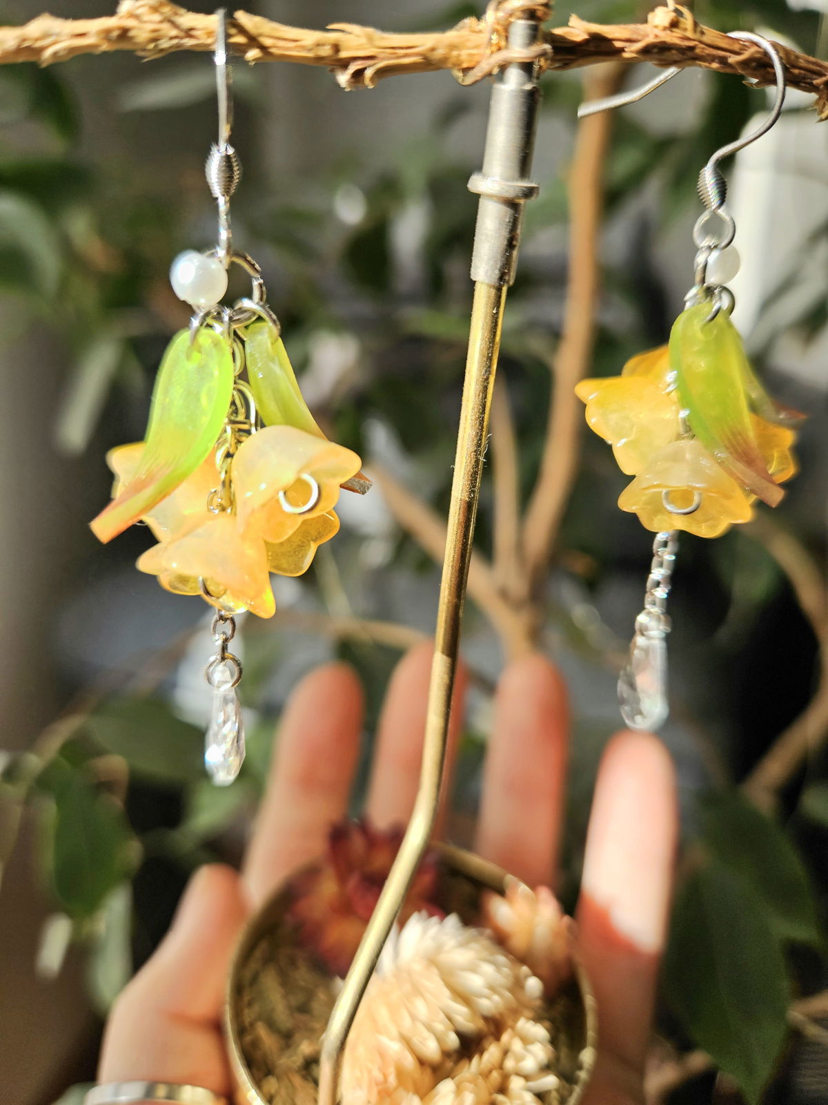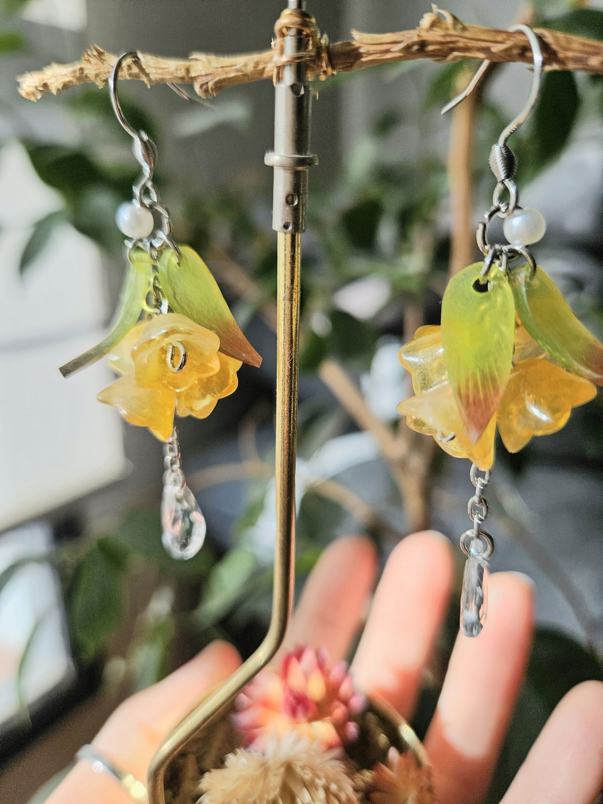 Divino aro de flores de lirios de vidrio y hojas hechas a mano con plástico retráctil
