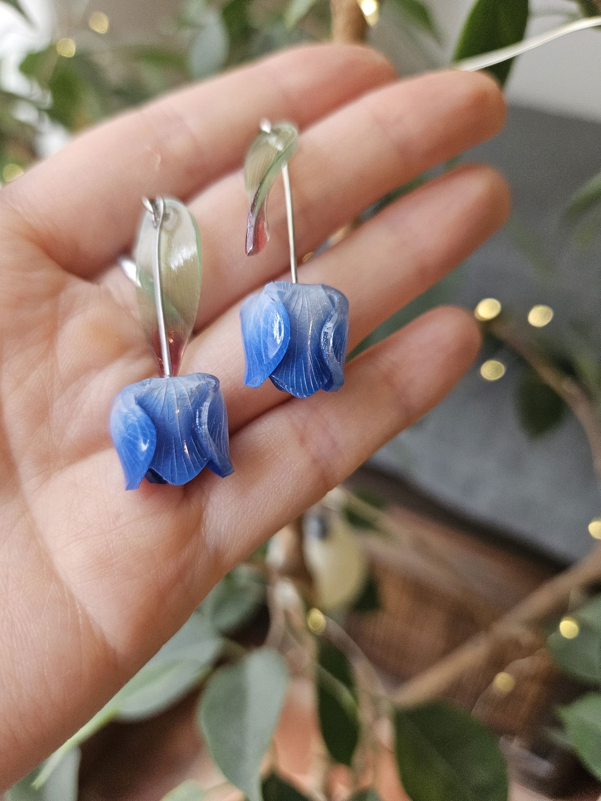 Cada tulipán y hoja están hechas a mano con plástico retractil.