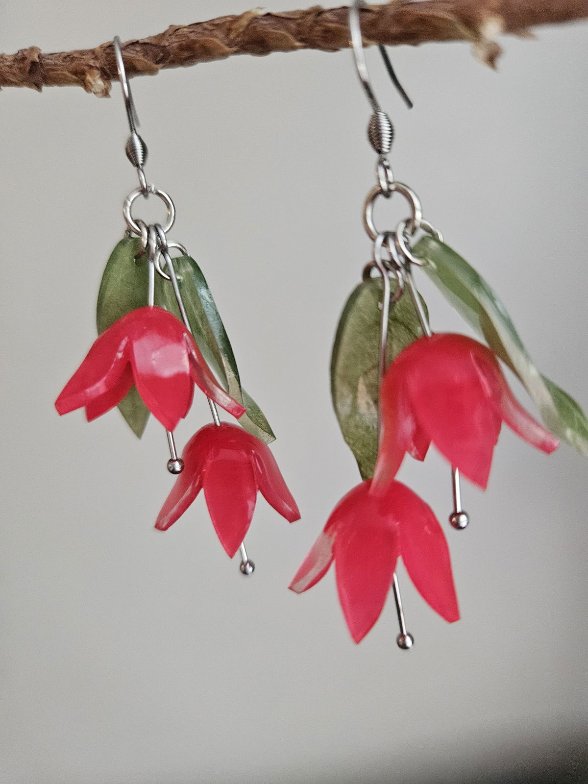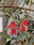 Hermosas flores acampanadas color rojo hechas enteramente tanto las flores y las hojas con plástico retráctil.